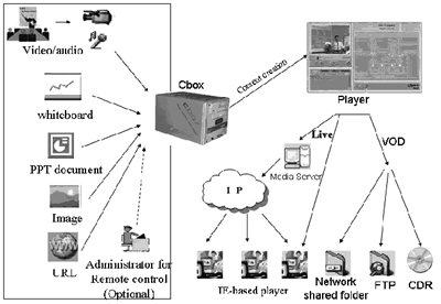 在對市場上現(xiàn)有產(chǎn)品進(jìn)行了綜合比較后,上海市稅務(wù)局決定使用美國Winnov公司的Cbox系統(tǒng)。Cbox是一種視頻采集和控制系統(tǒng),可以支持多種格式文檔,通過URL方式可以提供對未來文檔格式的支持,在操作時只需將文檔提供給Cbox,其余工作由Cbox自動完成; 自動攝像頭控制可預(yù)設(shè)三個位置,Cbox自動感應(yīng),并支持助教、直播、點(diǎn)播等模式,同時具有多種分發(fā)方式,可以存在局域網(wǎng)共享目錄、自動上傳至FTP和刻錄光盤。