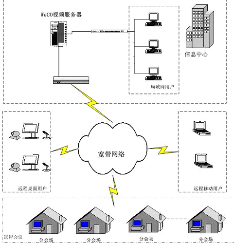 計(jì)算機(jī)、網(wǎng)絡(luò)技術(shù)高速發(fā)展的今天,傳統(tǒng)的通訊方式日益滿足不了人們的要求。人們要求能進(jìn)行遠(yuǎn)程會(huì)議,開展面對(duì)面的交流;同時(shí),在滿足傳統(tǒng)視頻會(huì)議音/視頻通信的基本要求之外,現(xiàn)代會(huì)議更希望能夠提供更加豐富多樣的會(huì)議討論形式和功能,比如:遠(yuǎn)程開展季度/年度預(yù)算及工作計(jì)劃的討論,需要遠(yuǎn)程共享PPT等演示文檔和EXCEL等表格,需要共同就某一網(wǎng)上信息開展討論,甚至能夠?qū)㈤_會(huì)的通知通過電子郵件和手機(jī)短消息的方式傳達(dá)到每一個(gè)與會(huì)者那里。