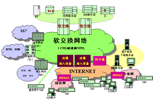 對于部署在專網(wǎng)上的TG及AG/部分IAD設(shè)備 當(dāng)用戶發(fā)起業(yè)務(wù)請求時(shí),網(wǎng)關(guān)設(shè)備將根據(jù)預(yù)設(shè)的SS IP地址將呼叫送至相應(yīng)的SS。