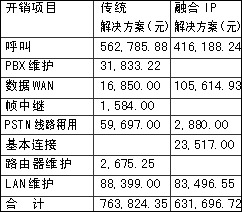 某企業(yè)傳統(tǒng)方案與融合方案年運(yùn)營開銷對(duì)比