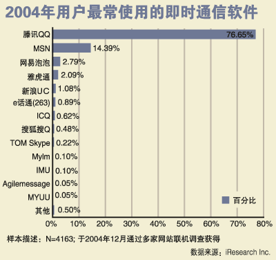 面對國外IM市場的火爆,我國IM軟件市場的發(fā)展前景更加令人充滿期待,據(jù)騰訊公司統(tǒng)計數(shù)據(jù)顯示,目前騰訊QQ的注冊賬戶已經(jīng)突破了4億,活躍用戶達到了1.5億,而最高同時在線賬戶也突破了1500萬戶大關(guān)。