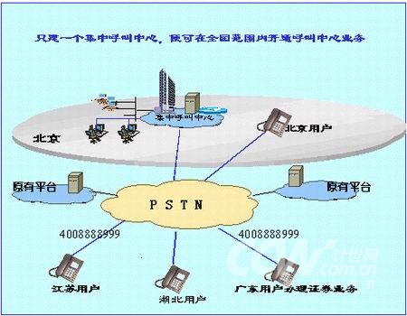 例如,大鵬證券原在部分省市有呼叫中心平臺(tái),用于當(dāng)?shù)仉娫挼慕尤。為了降低企業(yè)運(yùn)營(yíng)成本和拓展業(yè)務(wù)覆蓋范圍,大鵬證券計(jì)劃繼續(xù)采用呼叫中心方式為客戶提供服務(wù)。經(jīng)過對(duì)電話網(wǎng)、IP網(wǎng)等多種接入方式的比較分析,最終確定采用中國(guó)電信"一碼通"業(yè)務(wù)。