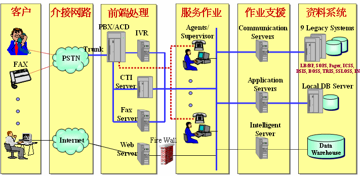 利用網(wǎng)路平臺(tái)在整合加入多項(xiàng)服務(wù),如寬頻電話咨詢﹙ADSL﹚、數(shù)據(jù)電路、智慧型網(wǎng)路(IN) 、及查號(hào)加值服務(wù)(1288)等業(yè)務(wù)使本系統(tǒng)展現(xiàn)更優(yōu)異之功能。