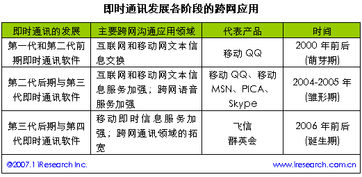 即時(shí)通訊發(fā)展各階段的跨網(wǎng)應(yīng)用