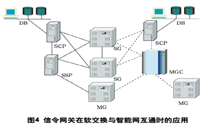 對現(xiàn)有的智能網(wǎng)來說,軟交換以及它所控制的節(jié)點構(gòu)成一個虛擬的SSP,可在INAP/CAP/TCAP/SCCP接口上通過信令網(wǎng)關(guān)與現(xiàn)有智能網(wǎng)中的SCP互通,共同提供智能網(wǎng)業(yè)務(wù),或者直接和IP