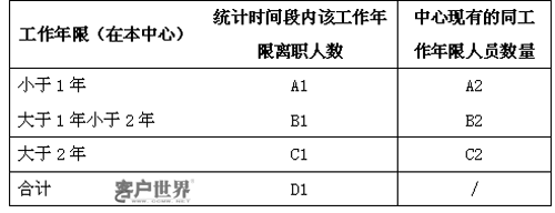 例如:(統(tǒng)計時間段內(nèi))在中心工作1年以上的離職人員總數(shù)占中心現(xiàn)有工作滿一年人員總數(shù)的比例