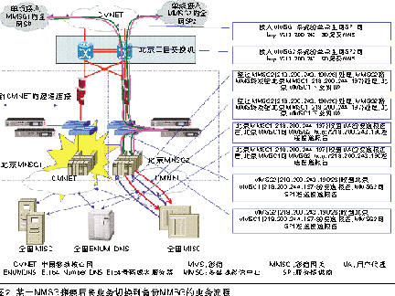 為驗證基于IP尋址的彩信網關備份方案的現(xiàn)網可行性,2006年12月6日在北京MMSG進行了容災備份的測試。當時,北京MMSG1已經割接入網,承載空中網公司、Sina公司的業(yè)務,北京MMSG2正在進行測試,TOM公司進行配合。