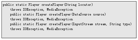 每個(gè)MMAPI程序都需要?jiǎng)?chuàng)建一個(gè)Player對(duì)象,前面我們已經(jīng)介紹過,MMAPI使用Manager的CreatePlayer函數(shù)來創(chuàng)建Player對(duì)象,該函數(shù)有三個(gè)版本,其格式如下: