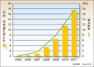 截至2011年,中國的IPTV用戶將達(dá)到了170萬,但是這一預(yù)測的前提是中國政府鼓勵(lì)電信和廣電部門進(jìn)行競爭,而且市場上活躍著大批內(nèi)容供應(yīng)商。但是這兩點(diǎn)目前還不確定。