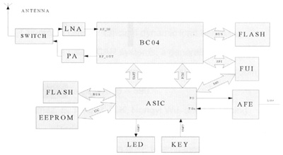 其中,BC04支持最大4個(gè)活動連接(包括耳機(jī)),同時(shí)支持兩路SCO語音,所以語音通過PCM和ASIC PCM相接可以有多路被送到模擬端,從而實(shí)現(xiàn)3方通話。ASIC部分實(shí)現(xiàn)PCM語音數(shù)據(jù)與模擬語音信號的相互轉(zhuǎn)換,通過發(fā)送和接收PSTN信令,負(fù)責(zé)對人機(jī)界面的控制。它通過GPIO(General