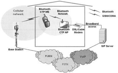 摘要 介紹了藍(lán)牙CTP(Cordless Telephony Profile)應(yīng)用模型,并闡述它在FMC(Fixed Mobile Convergence)接入網(wǎng)中的應(yīng)用:PSTN接入和VoIP接入。