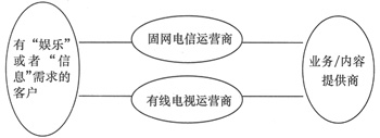 如圖1所示,雖然兩者使用的技術(shù)不同,但它們有一個(gè)相同的運(yùn)營組織結(jié)構(gòu),也就是說,客戶、運(yùn)營系統(tǒng)和業(yè)務(wù)/內(nèi)容提供商是它們競爭的3要素,下面將從這幾個(gè)方面對IPTV與“數(shù)字電視”的競爭做簡要的分析。