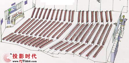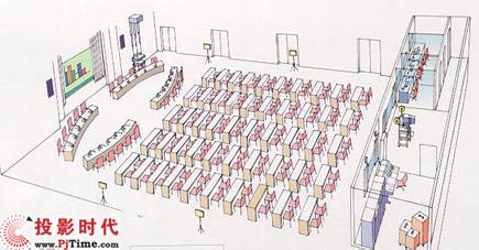 實例三:采用吊掛的投影機、電動投影幕布、功放音響系統(tǒng)