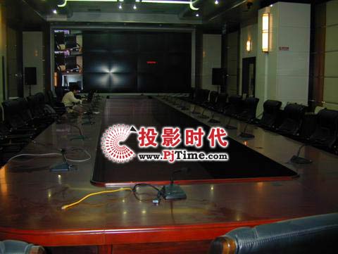 采用15臺60寸東芝背頭電視拼接組成的大屏幕顯示系統(tǒng),采用SONY會議系統(tǒng),采用快思聰集中控制系統(tǒng)。