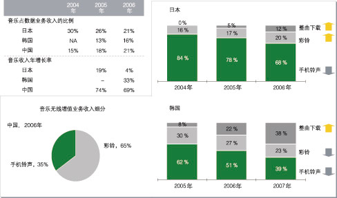 圖3 無線音樂業(yè)務在日本、韓國和中國的發(fā)展情況