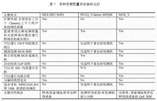 MOS_V,另一種是視頻的全參考(Full Reference)質(zhì)量評定。幾種評定方面的簡單比較如表1所示,相應(yīng)指標的介紹可以參考《電信網(wǎng)技術(shù)》2007年第12期的《IPTV