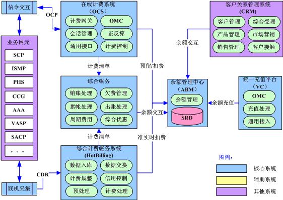 在線計(jì)費(fèi)系統(tǒng)通過實(shí)時信令交互實(shí)現(xiàn)對高風(fēng)險(xiǎn)和高價值業(yè)務(wù)的實(shí)時計(jì)費(fèi);綜合計(jì)費(fèi)帳務(wù)系統(tǒng)通過準(zhǔn)實(shí)時話單采集實(shí)現(xiàn)對后付費(fèi)用戶的準(zhǔn)實(shí)時計(jì)費(fèi);綜合帳務(wù)系統(tǒng)實(shí)現(xiàn)全業(yè)務(wù)的綜合優(yōu)惠和帳務(wù)處理;獨(dú)立的余額管理中心實(shí)現(xiàn)對電信余額的統(tǒng)一管理,未來將成為電信的“內(nèi)部銀行”;統(tǒng)一充值平臺實(shí)現(xiàn)全網(wǎng)全業(yè)務(wù)的統(tǒng)一充值支付。