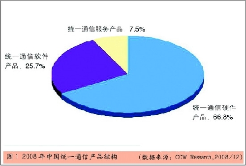從產(chǎn)品結(jié)構(gòu)角度分析,雖然受硬件設(shè)備價(jià)格因素的影響,統(tǒng)一通信設(shè)備市場(chǎng)仍然是通信市場(chǎng)中最大份額的一部分,市場(chǎng)份額占到66.8%。而且隨著企業(yè)用戶(hù)對(duì)于統(tǒng)一通信理解能力的加深,統(tǒng)一通信軟件產(chǎn)品與統(tǒng)一通信服務(wù)越來(lái)越受到更多企業(yè)的認(rèn)同。與2007年相比,統(tǒng)一通信軟件和服務(wù)產(chǎn)品市場(chǎng)份額有一定比例的增加。2008年,統(tǒng)一通信軟件產(chǎn)品達(dá)到市場(chǎng)份額的25.7%,特別是統(tǒng)一通信服務(wù)產(chǎn)品,增長(zhǎng)迅速,市場(chǎng)份額超過(guò)7.5%。