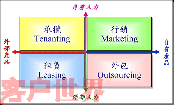 Matrix)就是由內(nèi)、外部的產(chǎn)品與人力所組合成的四個營運領域(如圖五)。