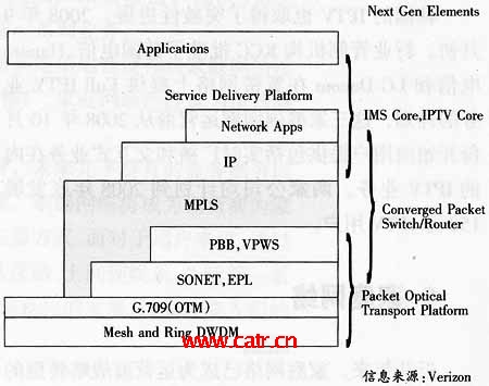 電信級(jí)以太網(wǎng)技術(shù)在2008年已成為承載網(wǎng)領(lǐng)域的熱點(diǎn),BT、AT&T、Sprint等部分運(yùn)營商已開始在下一代網(wǎng)絡(luò)中部署運(yùn)營商級(jí)以太網(wǎng)并提供相應(yīng)服務(wù)。未來5年內(nèi),在增量市場(chǎng)中,基于電信級(jí)以太網(wǎng)的分組化傳送網(wǎng)設(shè)備的市場(chǎng)份額將超越傳統(tǒng)SONET/SDH設(shè)備市場(chǎng)份額;在存量市場(chǎng)中,二者將長期共存。