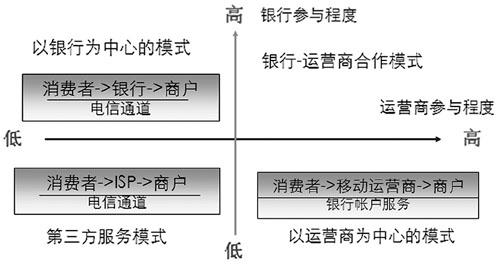系統(tǒng),通過(guò)定制終端,電信運(yùn)營(yíng)商可以將各種先進(jìn)的移動(dòng)應(yīng)用提供給用戶(hù),使用戶(hù)獲得良好的移動(dòng)化生活體驗(yàn)。因此,電信運(yùn)營(yíng)商在移動(dòng)支付方面具有較好的用戶(hù)資源和營(yíng)銷(xiāo)渠道?梢(jiàn),電信運(yùn)營(yíng)商和銀行的協(xié)作程度在很大程度上決定了移動(dòng)支付商業(yè)模式的績(jī)效水平。
