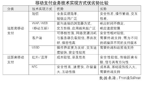 Frost&Sullivan公司高級(jí)咨詢(xún)顧問(wèn)林起勁對(duì)《中國(guó)電子報(bào)》的記者表示,總的來(lái)說(shuō),銀行機(jī)構(gòu)管理著廣大用戶(hù)的資金賬戶(hù),擁有完善的支付體系,在支付領(lǐng)域得到用戶(hù)的信任。電信運(yùn)營(yíng)商則擁有完備的網(wǎng)絡(luò)設(shè)施和先進(jìn)的IT