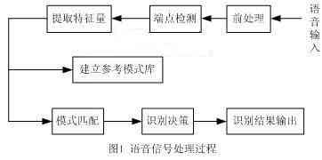 計算機(jī)語音識別過程與人對語音識別處理過程基本上是一致的。語音信號本身的特點造成了語音識別的困難。這些特點包括多變性,動態(tài)性,瞬時性和連續(xù)性等。目前主流的語音識別技術(shù)是基于統(tǒng)計模式識別的基本理論。一個完整的語音識別系統(tǒng)可如圖1所示。