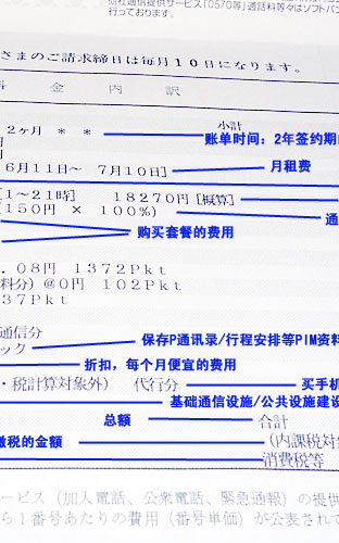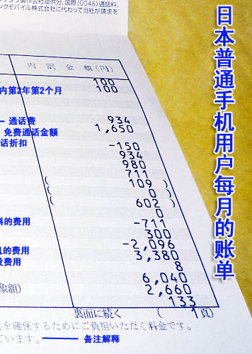 到底在購買各種套餐之后,用戶每個月使用多少錢呢?下面是一份普通的日本手機(jī)用戶每個月收到的賬單,通過這份賬單我們清晰看出3G資費(fèi)的構(gòu)成。在這里,我們清晰看到?jīng)]有漫游費(fèi),如果沒有折扣,該用戶至少需要付近3萬日元的費(fèi)用,實(shí)際上,最后用戶需要繳納的費(fèi)用是6064日元,其中還包含了購買新款手機(jī)3380日元的費(fèi)用,實(shí)際上產(chǎn)生的話費(fèi)是2660日元。