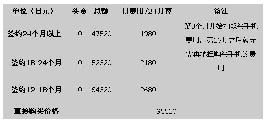 我們都知道日本的購買手機(jī)最主要是和運(yùn)營商簽約購買,我們以夏普2009年夏季最新款手機(jī)Soft Bank 933SH為例,來說明一下在日本購買手機(jī)的成本。總的來說,就是簽約時間越長,購買手機(jī)價格越低,簽約時間越短,購買價格越高。