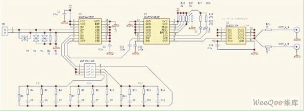 在本方案中,我們采用MAX4445配合外部阻容均衡網(wǎng)絡(luò)固定補(bǔ)償特定的傳輸距離,并結(jié)合MAX7474自動均衡的特點來補(bǔ)償網(wǎng)線質(zhì)量、安裝距離和阻容器件參數(shù)分散性等帶來的差異,很好地解決了1200米視頻信號的自適應(yīng)傳輸。