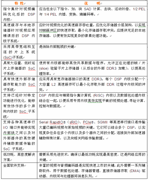 表1. 多媒體專用多核DSP重要特性