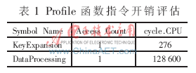 表1是CCS軟件Profile對(duì)各函數(shù)指令開銷的評(píng)估結(jié)果。