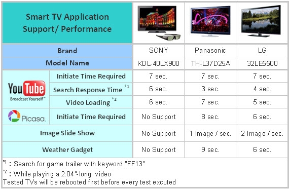 為了了解這三臺(tái)Smart TV實(shí)際操作應(yīng)用程序時(shí)的順暢度,我們特別比較了幾個(gè)它們支持的應(yīng)用程序。包括Youtube的影片播放、Picasa影像的開啟與呈現(xiàn)、影像的幻燈片瀏覽和氣象頻道等功能,多以LG這臺(tái)Smart TV的處理與反應(yīng)速度較佳,不僅開啟Youtube時(shí)間短,瀏覽影像與開啟氣象頻道時(shí)也最為快速。唯獨(dú)在Picasa的影像呈現(xiàn)上,可以看出Panasonic的影像明顯較LG來的清晰細(xì)致。另外,在天氣頻道的功能部份,Panasonic與LG皆能支持四組城市的設(shè)定,提供基本天氣預(yù)報(bào)與衛(wèi)星云圖的資訊,并讓使用者持續(xù)追蹤天氣變化,但Panasonic有更多的氣候,兩層的設(shè)計(jì)讓使用者能深入獲得更多相關(guān)資訊,因此需要較長處理時(shí)間也不失合理。