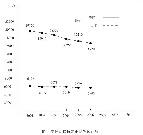 〔3〕大約有2%的美國(guó)家庭沒(méi)有電話(huà)。IBB咨詢(xún)公司資深分析師表示,「美國(guó)擁有大量愛(ài)講電話(huà)的人,可以隨處打電話(huà)正是美國(guó)人熱衷的事情。」 大型傳統(tǒng)電話(huà)公司如AT&T、威瑞森(Verizon),受到美國(guó)人的這一偏好的影響,移動(dòng)通信業(yè)務(wù)現(xiàn)都已經(jīng)超過(guò)了他們?cè)镜暮诵臉I(yè)務(wù)(固定電話(huà))。據(jù)桑福.伯恩斯坦公司的調(diào)查顯示,紐約地區(qū)固定電話(huà)的數(shù)量,從2000年以來(lái)已經(jīng)下降了55%,新澤西的情況也差不多,下降了50%。德州下降了20%,加州下降了21%。在年輕用戶(hù)中這個(gè)趨勢(shì)更為明顯:34.5%的25到29歲年齡段者,家中只有移動(dòng)電話(huà),30到44歲年齡段者,這個(gè)比例下降至15.5%,65歲以上者,只有2.2%。雖然移動(dòng)電話(huà)對(duì)固定電話(huà)的取代作用,日美兩國(guó)基本相似,但在日本通信公司卻是IP電話(huà)和VoIP電話(huà)的主要提供者,因此日本固定電話(huà)歷年下降曲線(xiàn)就比較平坦,不像美國(guó)那樣厲害,請(qǐng)見(jiàn)圖二。