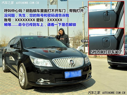 遠程遙控開啟車門是用來幫助那些粗心大意的車主的,也許把鑰匙誤鎖在車里的情況你一輩子也不會遇見幾次(我的同事卻經(jīng)常遇到這種窘境),不過一旦真的發(fā)生了,你就會慶幸自己的車裝配有安吉星系統(tǒng)了。因為你也可以通過給安吉星服務(wù)中心打電話,就可以遠程遙控打開車門。