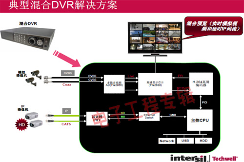 革命性的Intersil Techwell SLOCTM(Security Link over Coax)同軸電纜復(fù)合視頻傳輸解決方案是可通過一條同軸電纜同時(shí)傳輸模擬 CVBS 視頻和高清數(shù)字 IP 視頻信號(hào)的先進(jìn)調(diào)制解調(diào)器解決方案,其采用最新MODEM PHY技術(shù)的傳輸解決方案,可以基于同軸電纜同時(shí)傳輸高清IP碼流和標(biāo)清模擬實(shí)時(shí)視頻。