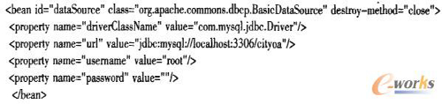 與本地開發(fā)不同的是云計(jì)算平臺(tái)下,由于服務(wù)器采用虛擬主機(jī)技術(shù),無法像本地服務(wù)器那樣配置數(shù)據(jù)庫(kù)連接池,因此需要CRM系統(tǒng)自己管理數(shù)據(jù)庫(kù)連接池。本系統(tǒng)使用Spring管理下的數(shù)據(jù)庫(kù)連接池,運(yùn)用Apache開源DBCP框架配置連接池代碼如下: