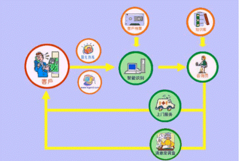 售后技術(shù)咨詢及報(bào)修:用戶購機(jī)之后,同樣可以通過電話或者網(wǎng)絡(luò)進(jìn)入呼叫中心系統(tǒng),系統(tǒng)會通過用戶檔案庫得到用戶的詳細(xì)信息并為他尋找合適的咨詢員,咨詢員會依據(jù)共享的知識庫為用戶解決問題,如果用戶的機(jī)器需要上門服務(wù)。咨詢員會通過網(wǎng)絡(luò)查詢?nèi)珖⻊?wù)渠道的工程師和備件情況,并安排工程師迅速上門為用戶服務(wù)。維修完成一天后,系統(tǒng)會自動產(chǎn)生電話呼出,由咨詢員直接詢問用戶對服務(wù)過程的滿意程度,以便改進(jìn)我們的工作。