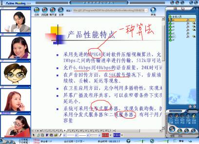 據(jù)該公司技術(shù)總監(jiān)李明先生介紹,Active Meeting2004是為了迎合寬帶運(yùn)營(yíng)而專門(mén)設(shè)計(jì)開(kāi)發(fā)的。首先,服務(wù)器引用"級(jí)聯(lián)"方式,通過(guò)系統(tǒng)服務(wù)器端Active Center的"平衡分流"設(shè)計(jì),使得任何單位的會(huì)議和交流能夠流暢的進(jìn)行。
