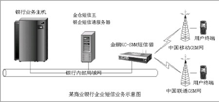 2004年7月,某地級市商業(yè)銀行采用了金鵬KC-SMM短信貓和“金倉短信王銀企短信通解決方案”軟件搭建了企業(yè)級的短信服務(wù)體系。鑒于業(yè)務(wù)量并非很大,所以盡管整個商業(yè)銀行有近三百個辦公網(wǎng)點,在設(shè)備上該商業(yè)銀行仍然只采用一套軟硬產(chǎn)品!敖瘗i的短信平臺產(chǎn)品目前在北方鋪開的時間并不長,所以在價格上有一定的傾斜,我們商業(yè)銀行購買的產(chǎn)品,價格比較便宜!痹撋虡I(yè)銀行信息部某負責人說。