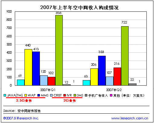對(duì)此,艾瑞認(rèn)為,空中網(wǎng)Q2業(yè)績(jī)下滑主要原因是由于中國移動(dòng)2007年5月開始實(shí)施一系列新政策,包括當(dāng)手機(jī)用戶下載WAP產(chǎn)品時(shí)顯示GPRS服務(wù)費(fèi)用提醒,以及將空中網(wǎng)和其它第三方WAP服務(wù)提供商從中國移動(dòng)定制手機(jī)內(nèi)置菜單中刪除。