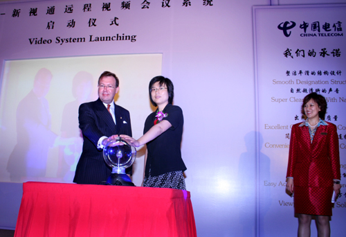 在新聞發(fā)布會(huì)儀式上,來自中國(guó)電信和北京國(guó)賓酒店信息中心的技術(shù)人員為來賓們現(xiàn)場(chǎng)演示了這套視頻會(huì)議系統(tǒng),國(guó)賓酒店安裝的這套全球先進(jìn)的“新視通”視頻會(huì)議系統(tǒng),是一款高檔分體式的會(huì)議室型終端服務(wù)體系,它可以提供非常靈活可靠及強(qiáng)大的功能,完全可以滿足各種會(huì)議室、教室或中小規(guī)模的會(huì)議應(yīng)用環(huán)境。采用專門集成的音響系統(tǒng),利用“新視通”的專利技術(shù),提升了音頻質(zhì)量。通過雙揚(yáng)聲器和雙麥克風(fēng),可以清晰的聽到每個(gè)發(fā)言人的聲音,輕松辨別多個(gè)發(fā)言人的同時(shí)談話,感受純正、豐滿的音頻質(zhì)量。與其他運(yùn)營(yíng)商推出的視訊業(yè)務(wù)相比,