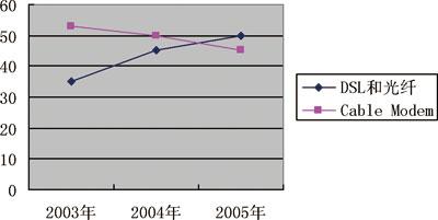 市場研究公司ParksAssociates最新發(fā)布的研究報(bào)告稱,2007年美國住宅用戶的寬帶網(wǎng)普及率將超過50%,美國住宅寬帶網(wǎng)用戶將超過6000萬,這些用戶都可以通過寬帶接入享受三種業(yè)務(wù)捆綁服務(wù)。由于電信公司的寬帶接入技術(shù)占優(yōu)勢,因而在三種業(yè)務(wù)捆綁服務(wù)方面,電信公司占有競爭優(yōu)勢。所以,凡是在兩家有競爭的地方,有線電視公司都無例外地降低了價(jià)格,并失去了相當(dāng)一部分傳統(tǒng)市場。