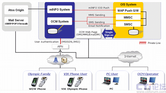 奧運(yùn)社區(qū)傳送服務(wù),簡稱OCM,是用于競賽運(yùn)營的移動(dòng)通信服務(wù)機(jī)構(gòu),OCM的服務(wù)包括使用短信和彩信的信息群發(fā)以及使用即時(shí)信息和電子郵件的社區(qū)通信服務(wù)。屆時(shí),三星北京2008WOW將根據(jù)用戶的喜好設(shè)置提供個(gè)性化的奧運(yùn)信息,分為競賽、新聞、信息、火炬接力和“我的WOW”——每個(gè)WOW用戶可以根據(jù)自身的喜好定制特殊的信息服務(wù)。