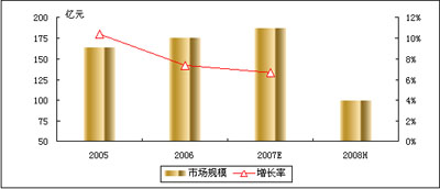 賽迪顧問定義的電信應用是指運營商、設備提供商、系統(tǒng)集成商針對各行業(yè)特點提供的電信解決方案和電信服務。2008年上半年,中國電信行業(yè)應用市場規(guī)模達到99.2億元人民幣,同比增長8.3%。賽迪顧問預測,2008年全年中國電信行業(yè)應用市場規(guī)模將突破200億元,同比增長7.1%,持續(xù)平穩(wěn)增長的趨勢。