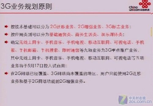 前不久,有論壇網友曝光了幾張聯通內部3G培訓所用的PPT截圖,其中不僅提到了聯通3G業(yè)務的運營方式,2G/3G同名業(yè)務的關系,還再一次強調了聯通將重點推廣的3類九項主要3G業(yè)務。這和筆者前段時間為大家曝光的《官方Flash動畫:解析聯通3G九大特色業(yè)務》所提到的聯通9大特色3G業(yè)務保持一致。