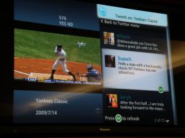在使用電視窗件時,電視機屏幕將被分為左右兩塊,Twitter消息顯示在其中一個屏幕中。這一應用在觀看重大事件或者體育賽事時可以帶來非常精彩的體驗。比如觀看紐約楊基隊的一場棒球比賽,用戶可以同時閱讀洋基隊有關的Twitter短消息。