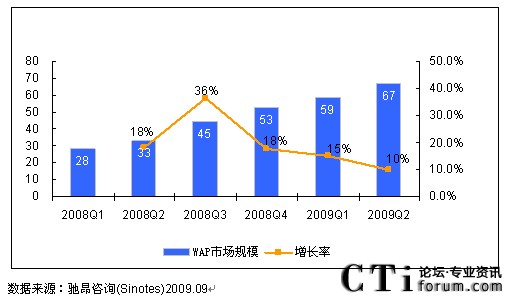 2009年第二季度中國(guó)WAP市場(chǎng)規(guī)模達(dá)67億元