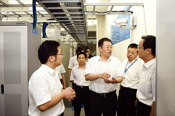 河南洛陽市12580家庭服務(wù)呼叫中心經(jīng)過一段時間的試運行,目前已有200多家家庭服務(wù)業(yè)公司加入該呼叫中心,實現(xiàn)了保姆、月嫂、保潔、開鎖、家教、婚慶、送鮮花、快遞、送餐和鐘點工等十幾項服務(wù),并將逐步擴大到50多項服務(wù)。圖為洛陽市副市長高頌革(右三)在洛陽移動公司視察指導(dǎo)工作。