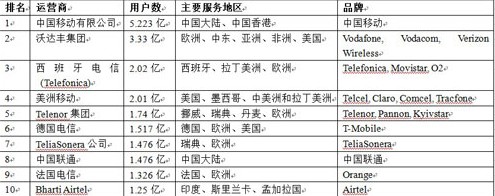 據(jù)國外媒體報(bào)道,下面根據(jù)2009年底的用戶總數(shù)列出全球10大無線運(yùn)營商。排名第11到20的運(yùn)營商名單將于下周公布。用戶信息和市場名單均來自各運(yùn)營商的網(wǎng)站。RCR Wireless News公布的運(yùn)營商排行榜為RCR Wireless News所有,而不應(yīng)被視為任何上榜公司的一種認(rèn)可。